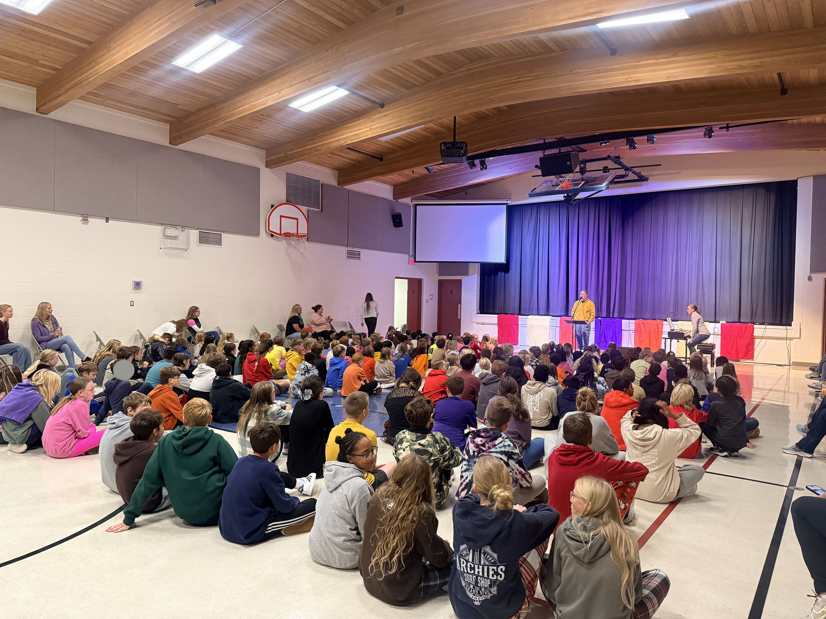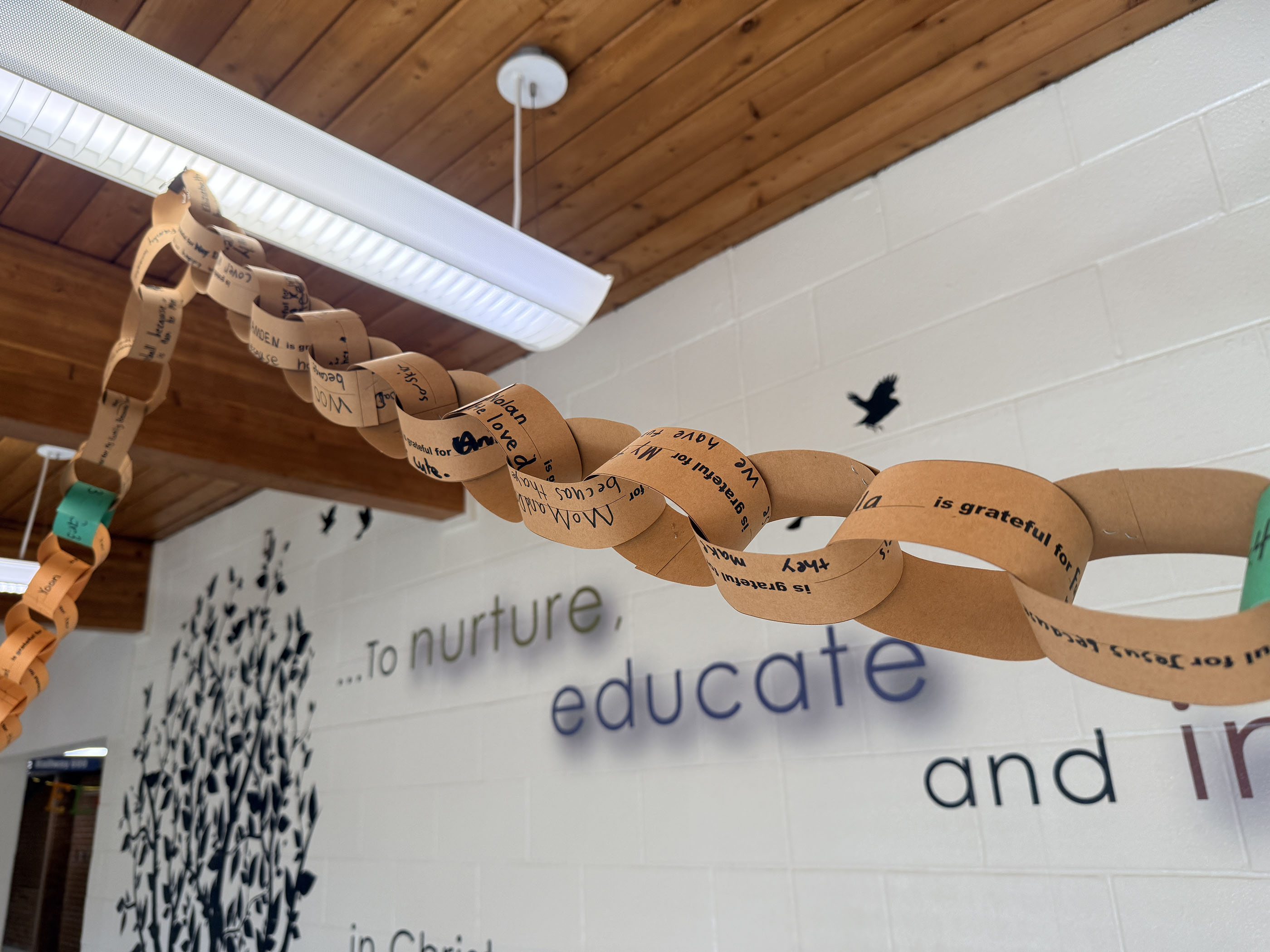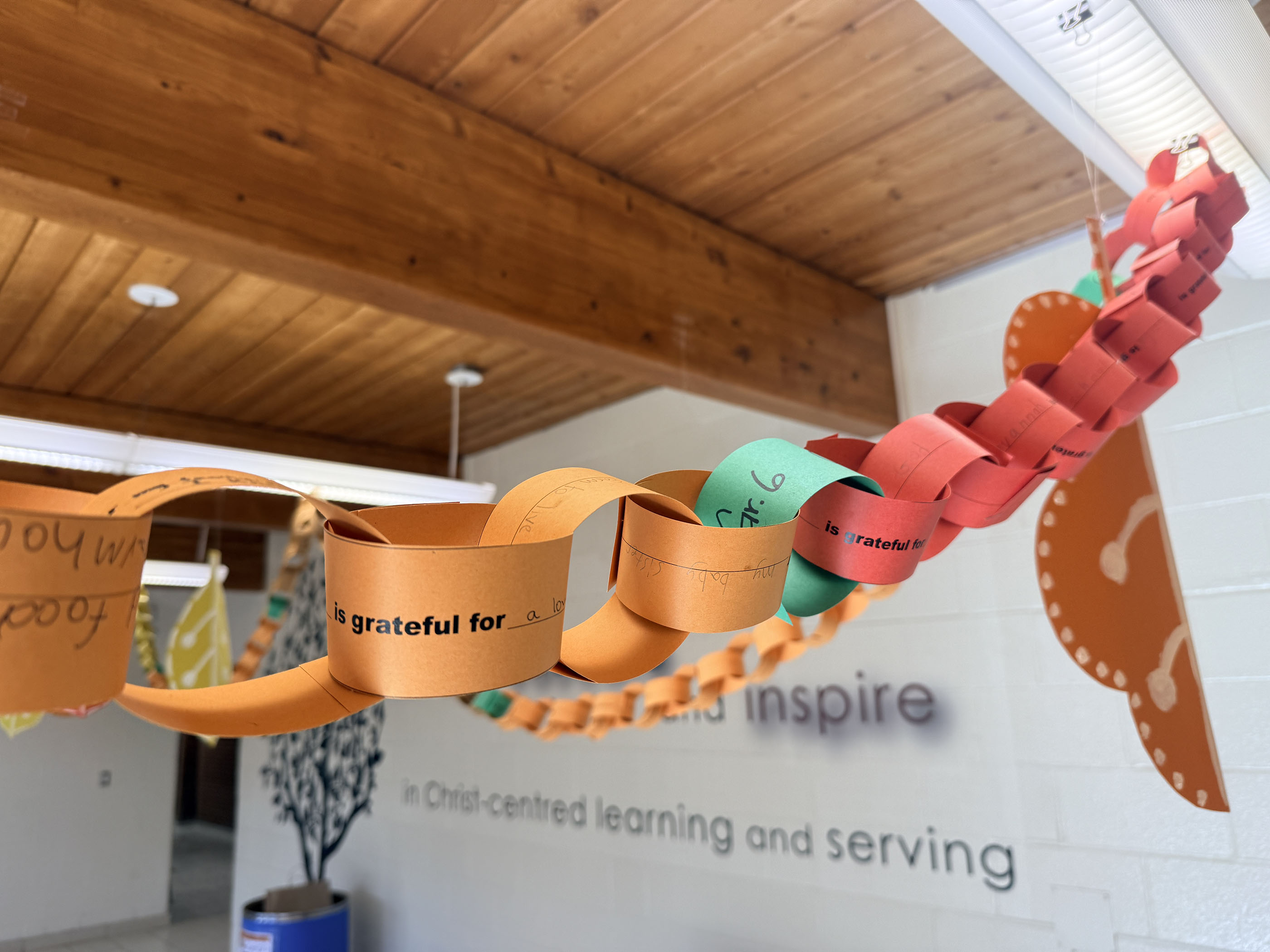 Another meaningful part of our chapel was a hands-on activity that let students express their gratitude in a tangible way. Each student wrote something they were thankful for on a paper link, and these links were carefully joined together to create a long, colourful thankfulness chain. The chain is now proudly displayed in the school foyer, a vibrant visual reminder of the many ways our students, staff, and families see God’s goodness in their lives every day. Walking by it is a joy and a blessing, showing just how rich our community is in thankfulness.