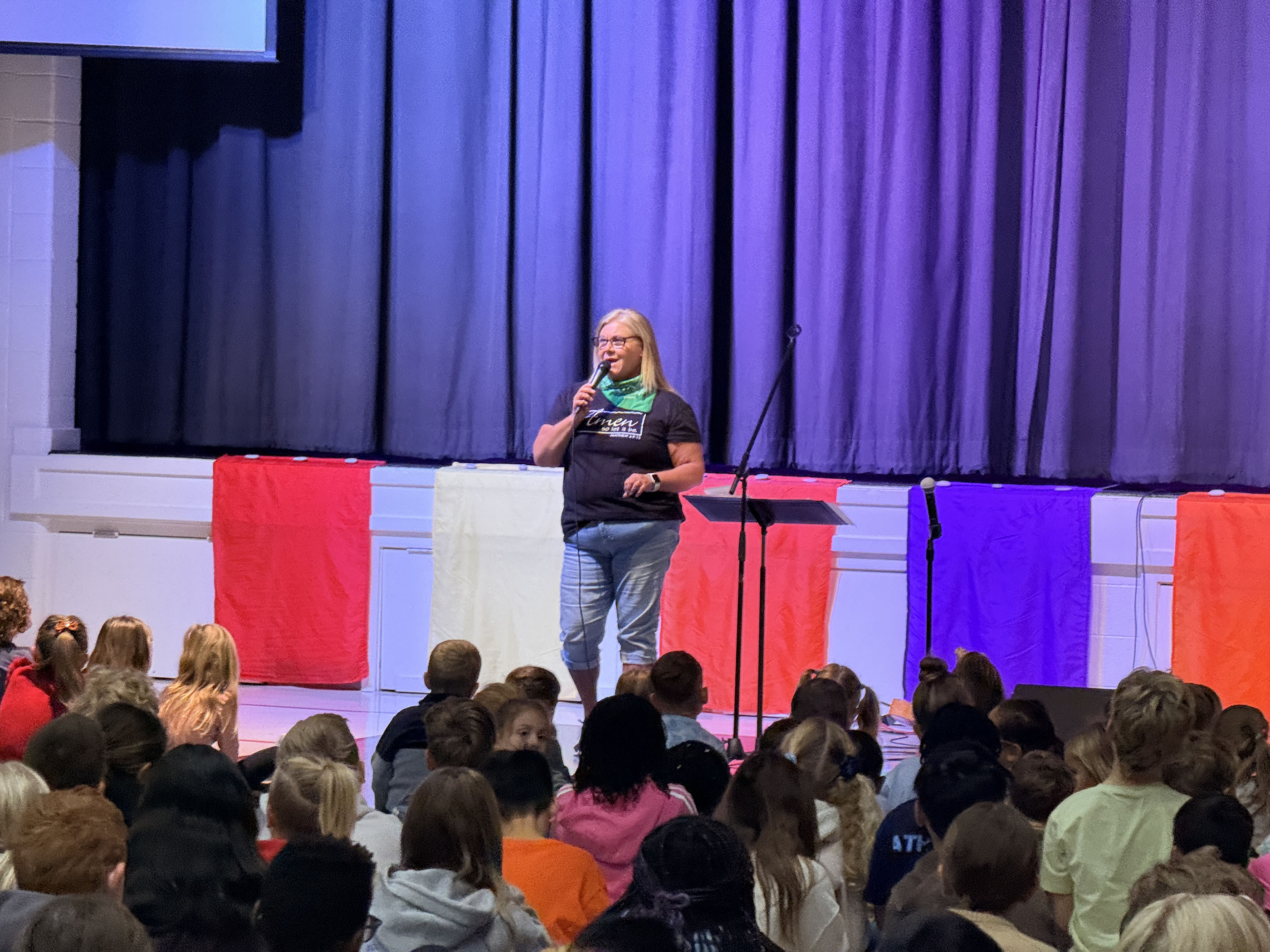 The chapel continued with a moment of reflection and inspiration through music. We watched Brandon Lake’s performance of “Gratitude”, a beautiful song that reminded us to lift our hearts in thanks. Then, as a school, we sang the song together. The energy and joy in the room were palpable—students and staff alike felt the power of praise and the importance of pausing to recognize God’s faithfulness.