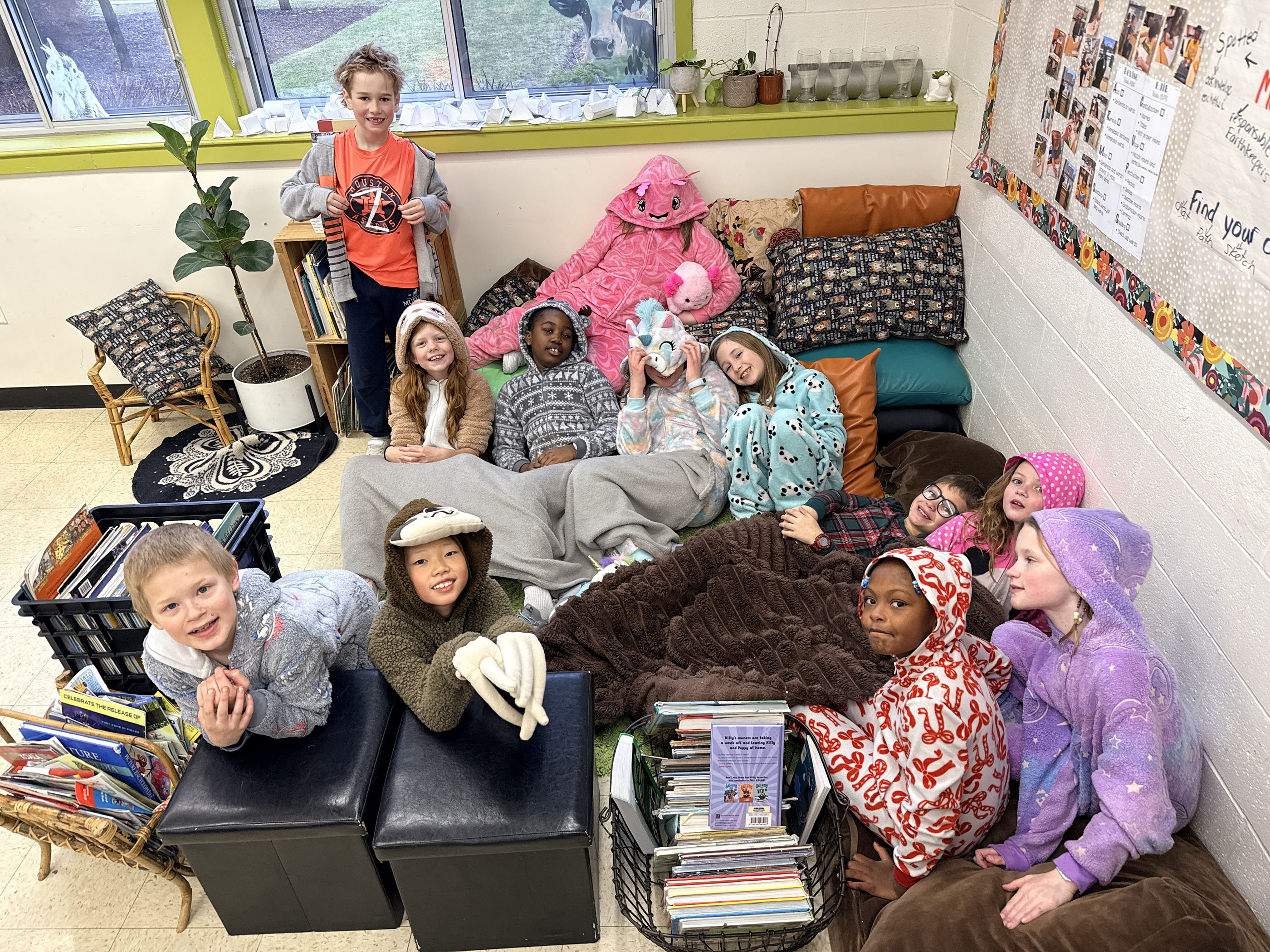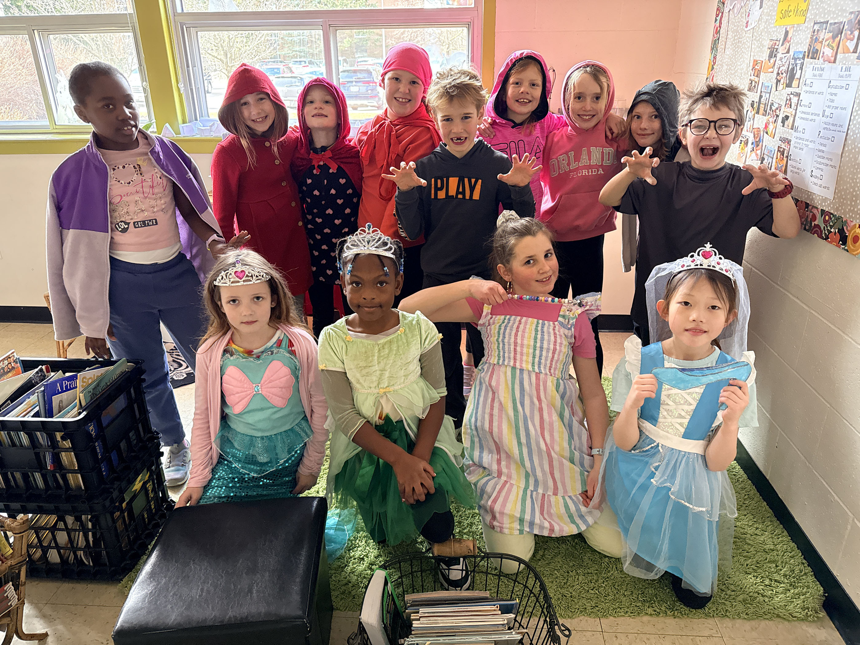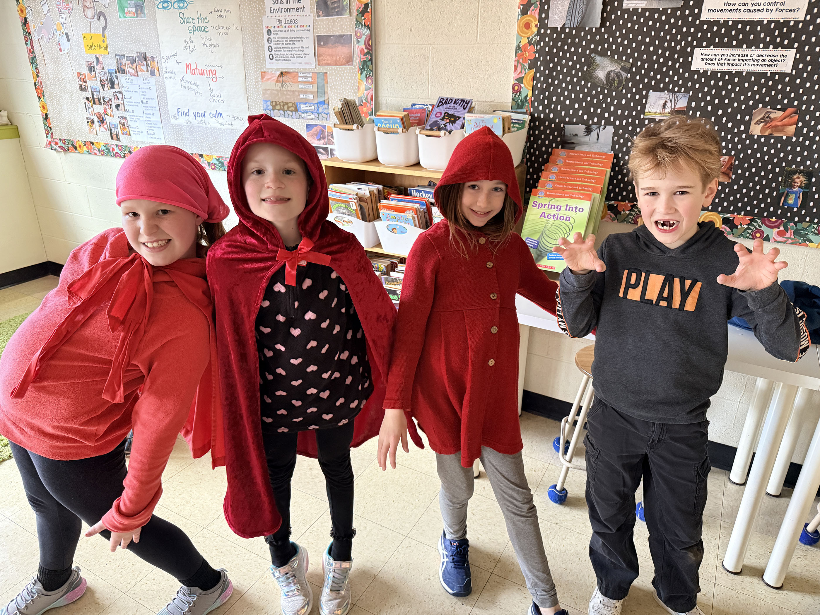 The week kicked off with Moo Monday, where the classroom was overrun with cows…who also talked “moo” all day long! Tricks Tuesday had everyone swapping names, causing plenty of giggles and mix-ups. On Onesie Wednesday, the students cozied up in their favourite onesies, and Fairytale Thursday brought storybook characters to life, from Little Red Riding Hoods and wolves to little pigs and princesses.