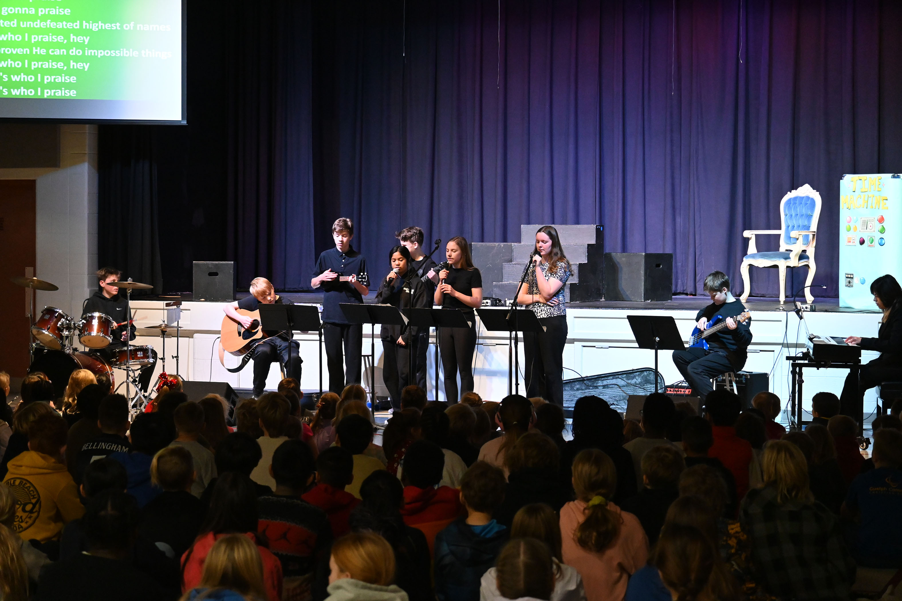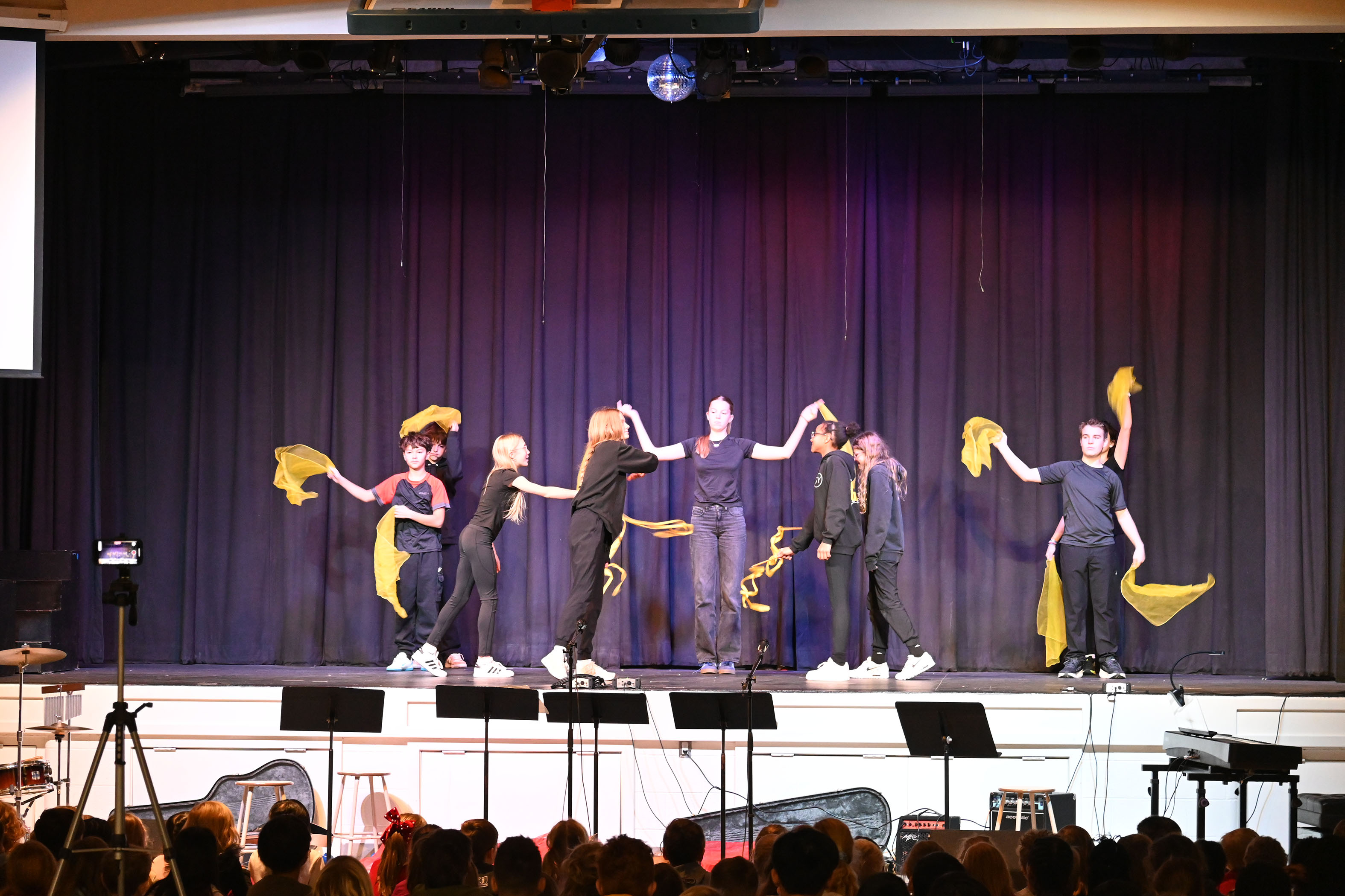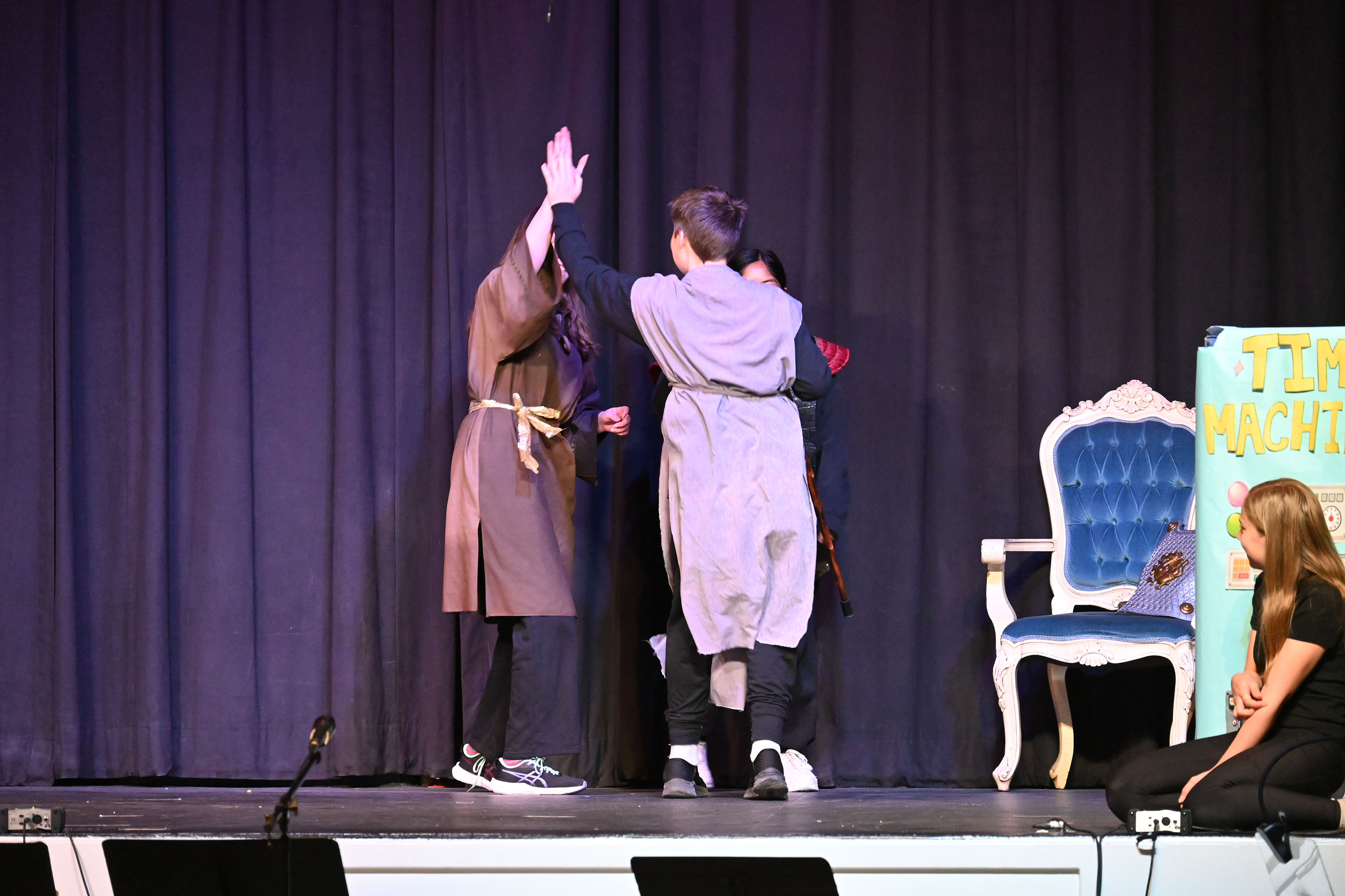 What– 4 story skits combined by a young person trying to learn about trusting God. She travels back into Bible times to learn the story of Daniel, David, Esther, and Noah. The main character has a guide with a time travelling machine. Before the skits, some students performed “That’s Who I Praise” by Brandon Lake. After the skits, all the other students created a dance to “I Trust in God” by Elevation Worship. `