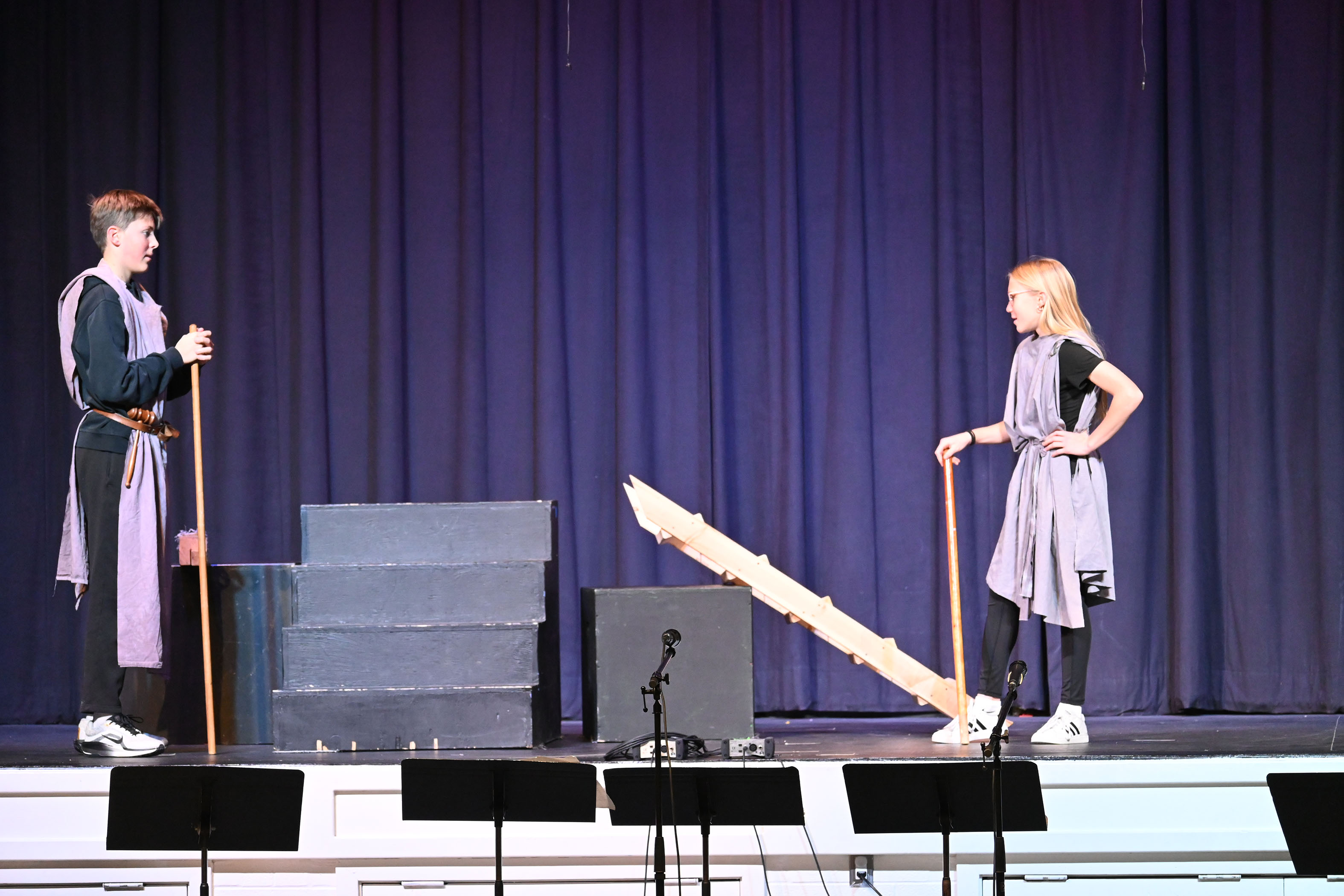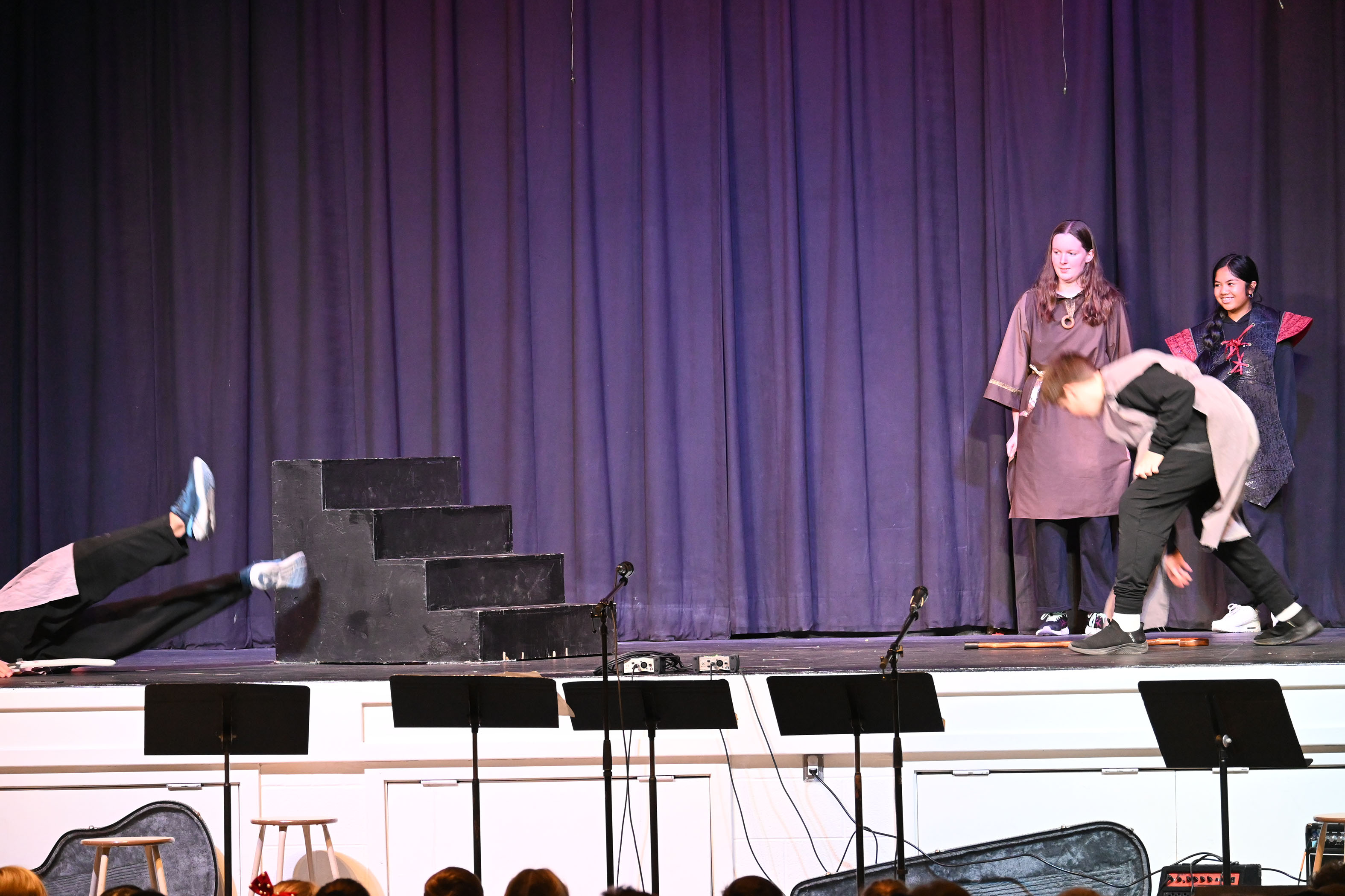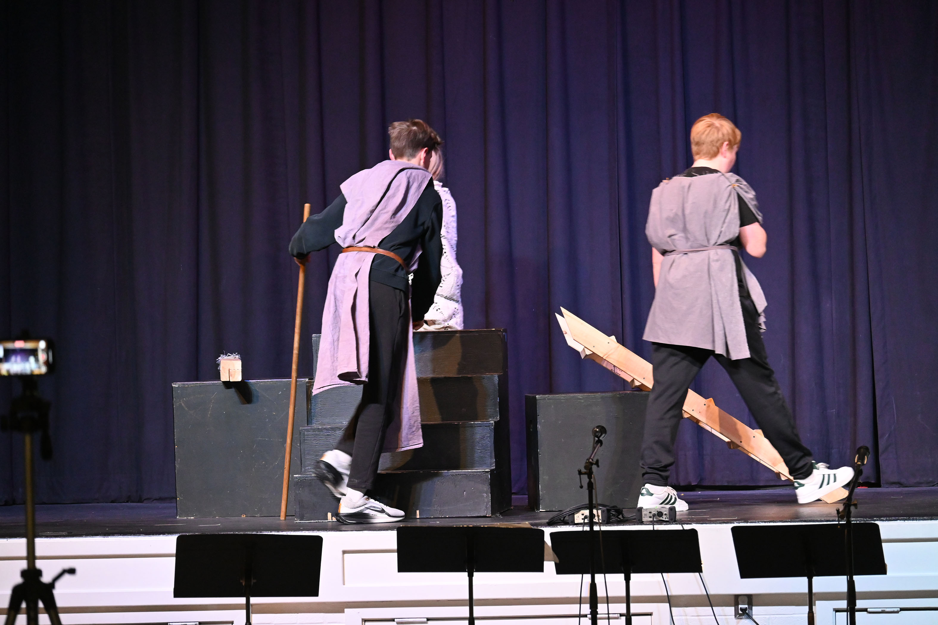 What– 4 story skits combined by a young person trying to learn about trusting God. She travels back into Bible times to learn the story of Daniel, David, Esther, and Noah. The main character has a guide with a time travelling machine. Before the skits, some students performed “That’s Who I Praise” by Brandon Lake. After the skits, all the other students created a dance to “I Trust in God” by Elevation Worship. `