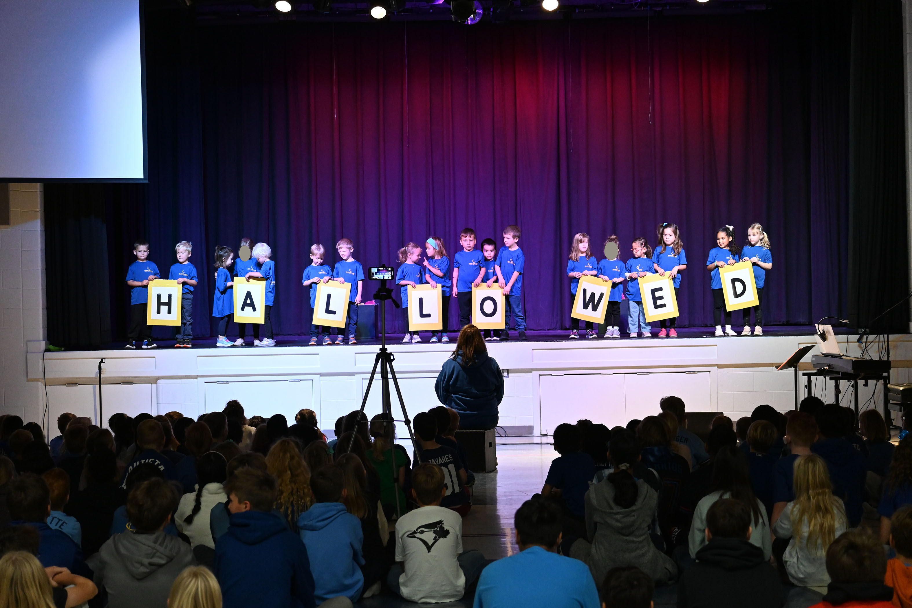 This month’s school focus is “Hallowed be Your Name,” and Kinder C helped us explore what the word hallowed means in a creative and thoughtful way. Students took turns spelling the word across the stage, with each child sharing a meaningful definition connected to their letter. It was a beautiful demonstration of how even our youngest learners can engage deeply with big ideas about who God is.
