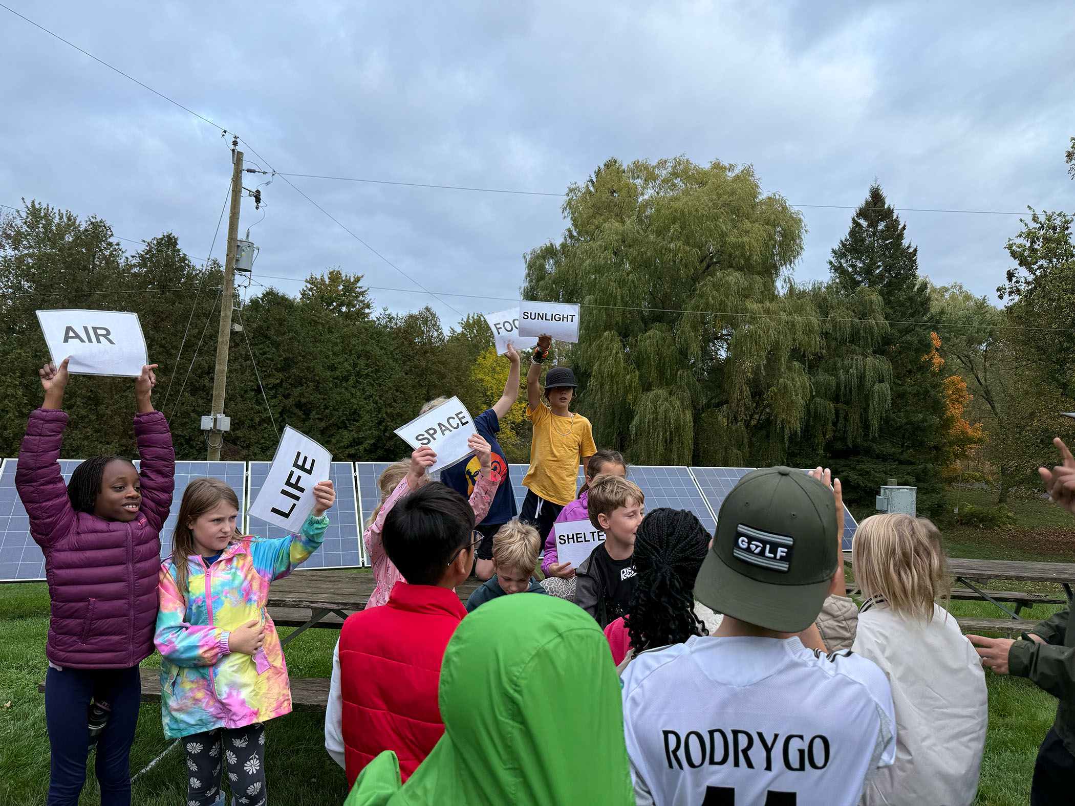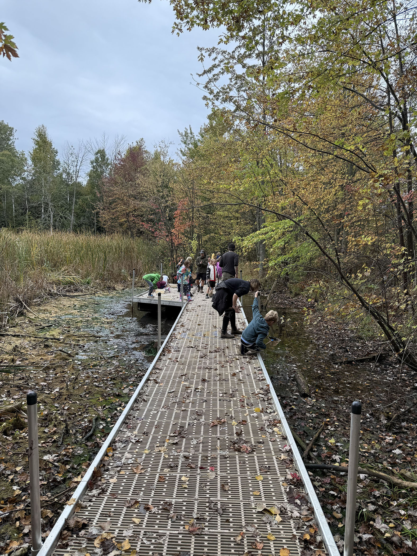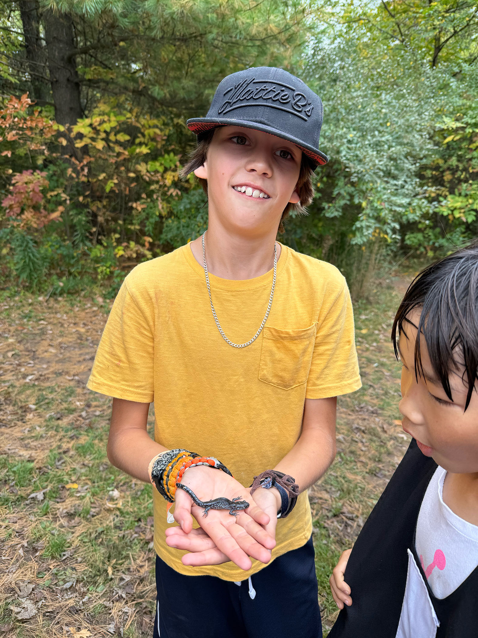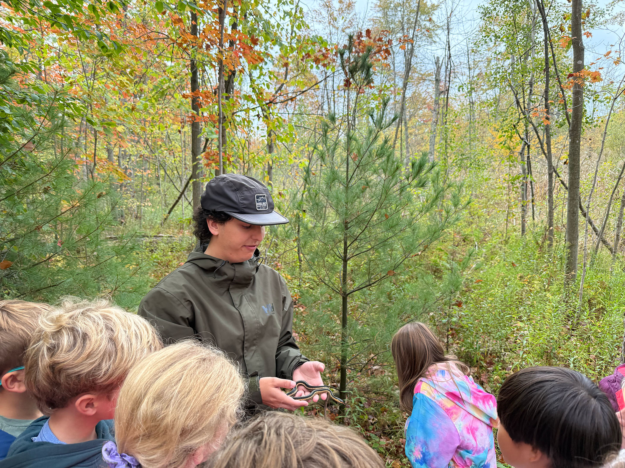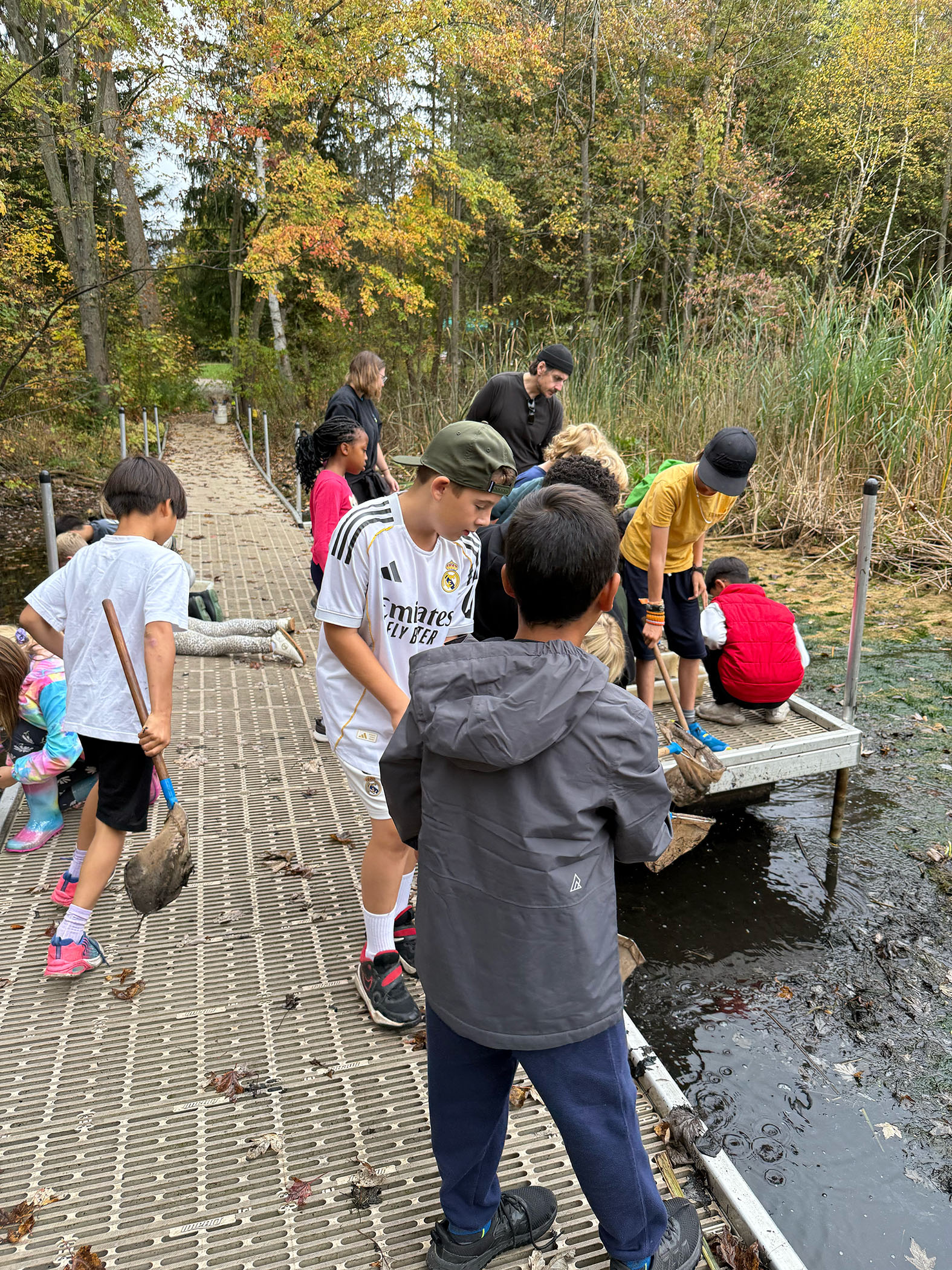 On October 7, Grade 4 and 5 went to Mountsberg Conservation Area to learn about habitats. While we were there, we played games to learn about food chains. The games were fun but tiring. We went on a hike and saw lots of things including a black and yellow gardener snake, a blue salamander, 2 brown toads, very colourful trees, and a stinky swamp. We also went fishing with a small but powerful net. Our goal was to catch fish, minnows, frogs, toads, and tadpoles.