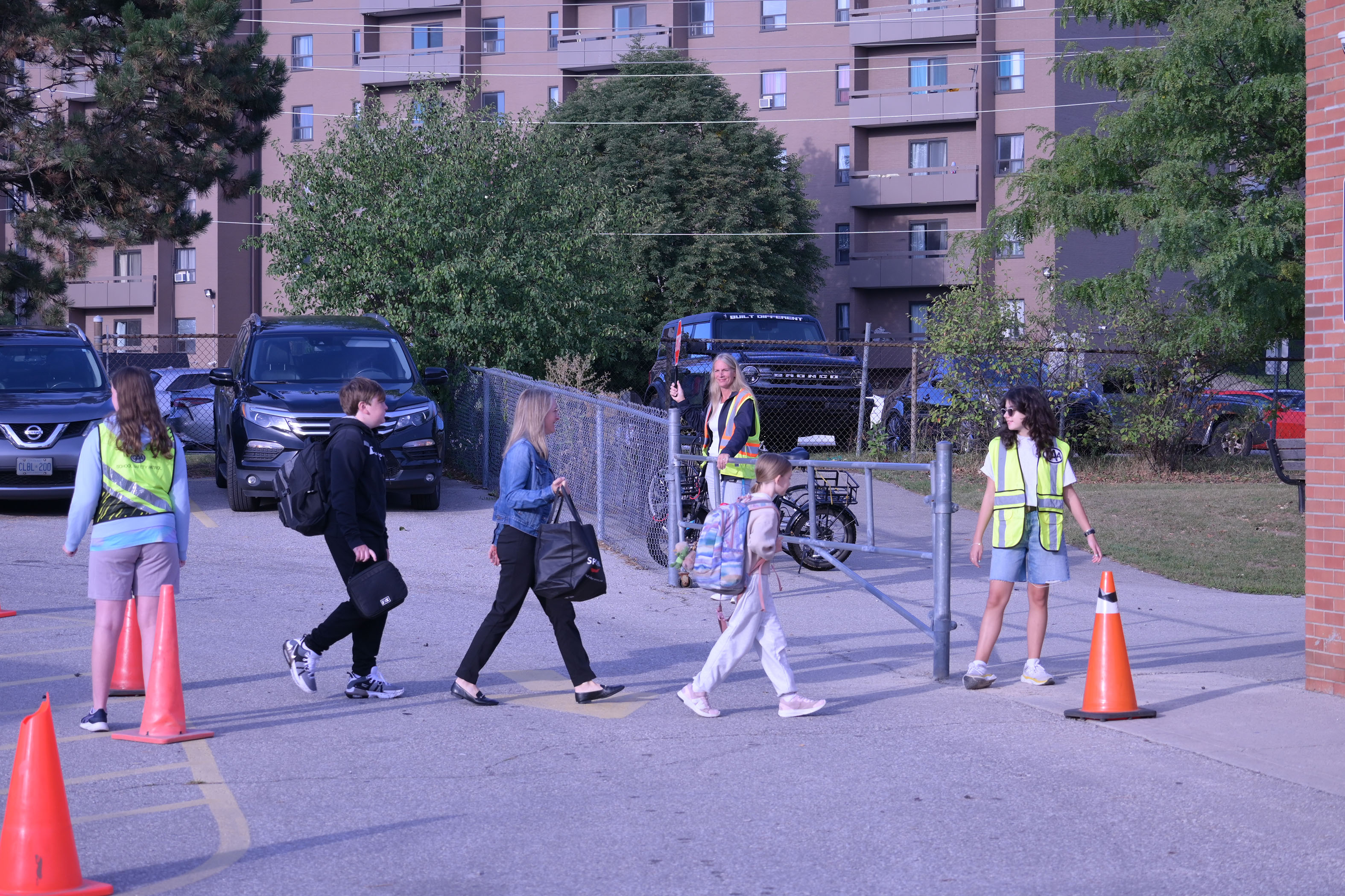 - When crossing the road with your child(ren), walk through the cones where the patrollers stand, instead of walking around them. This means that if there is a car coming, they can stop you before you cross. This also sets a good example for other students when crossing.