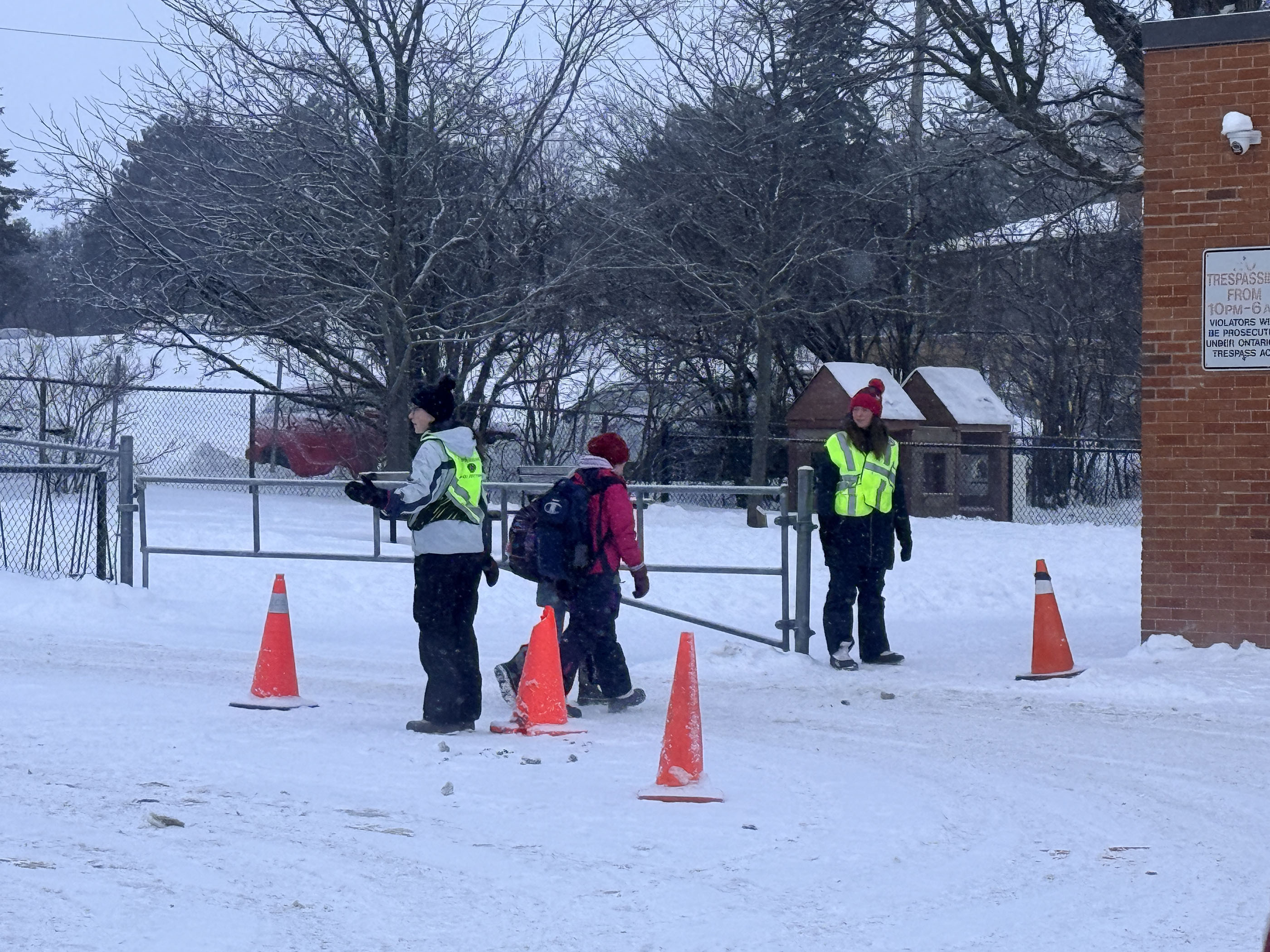 You may have seen students standing out on the driveway, wearing bright coloured vests, both at morning drop off and afternoon pickup. These students are known as patrollers. They are assigned for one week, either morning or afternoon, to stand out on the driveway and ensure that children cross the crosswalk safely. These students are all volunteers from Grade 7 and 8, and choose to sacrifice their time to make sure your child(ren) can get to school safely. Patrollers work in every weather – rain, snow, sleet, and sunshine – and are trained twice a year by a police officer, who tells them how to deal with numerous situations, and how to keep everyone safe.